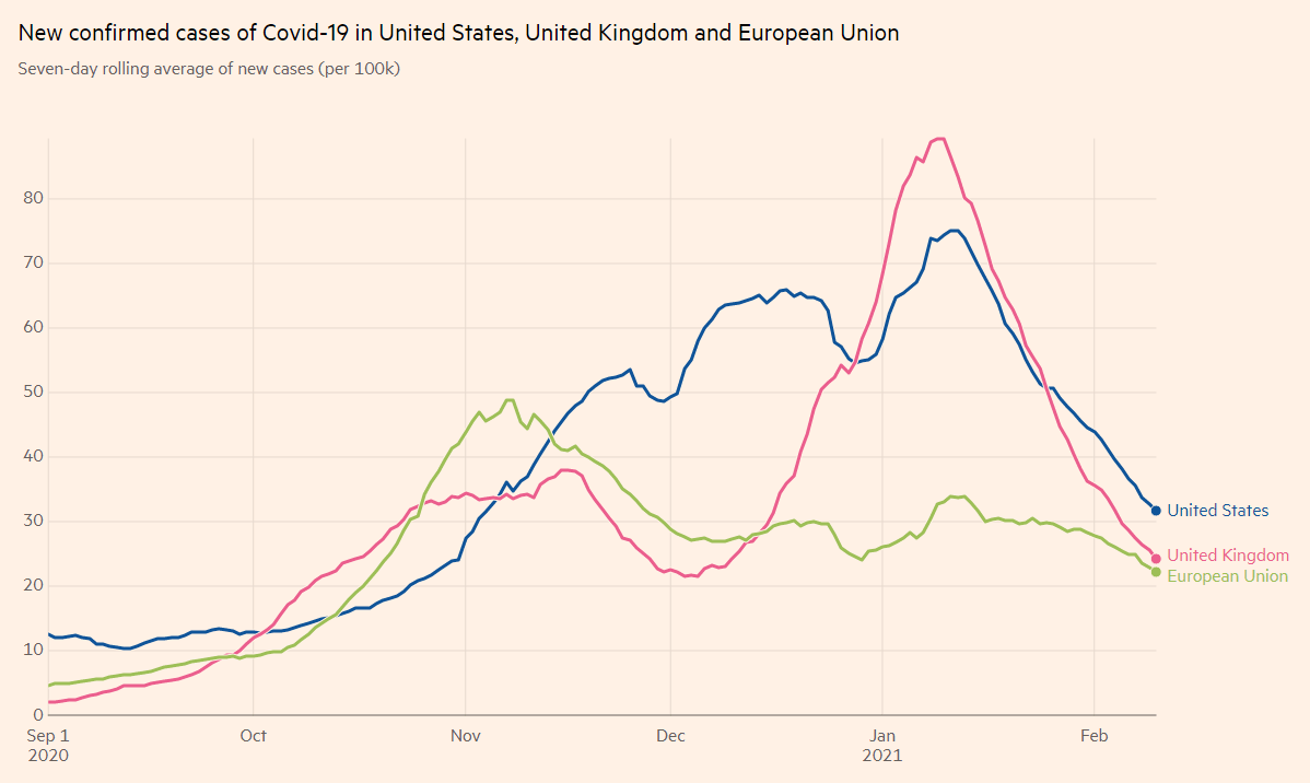 Does the national inoculation effort already positively impact pushing infections lower, or is it the lockdown? For markets, it does not matter, as long as Britain’s trend remains sharply to the downside.