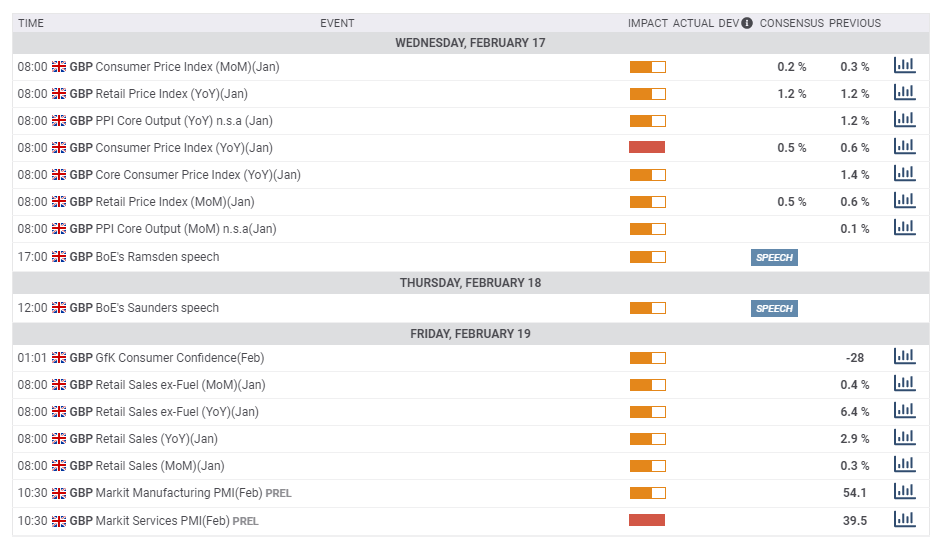 When will Britain exit lockdown, and how? While the PM promised to lay down a plan only on February 22, details are set to leak out in the upcoming week. The faster the government moves, the better for the economy and the pound. Removing restrictions is conditional on advancing rapidly in vaccination, making daily figures more important.
