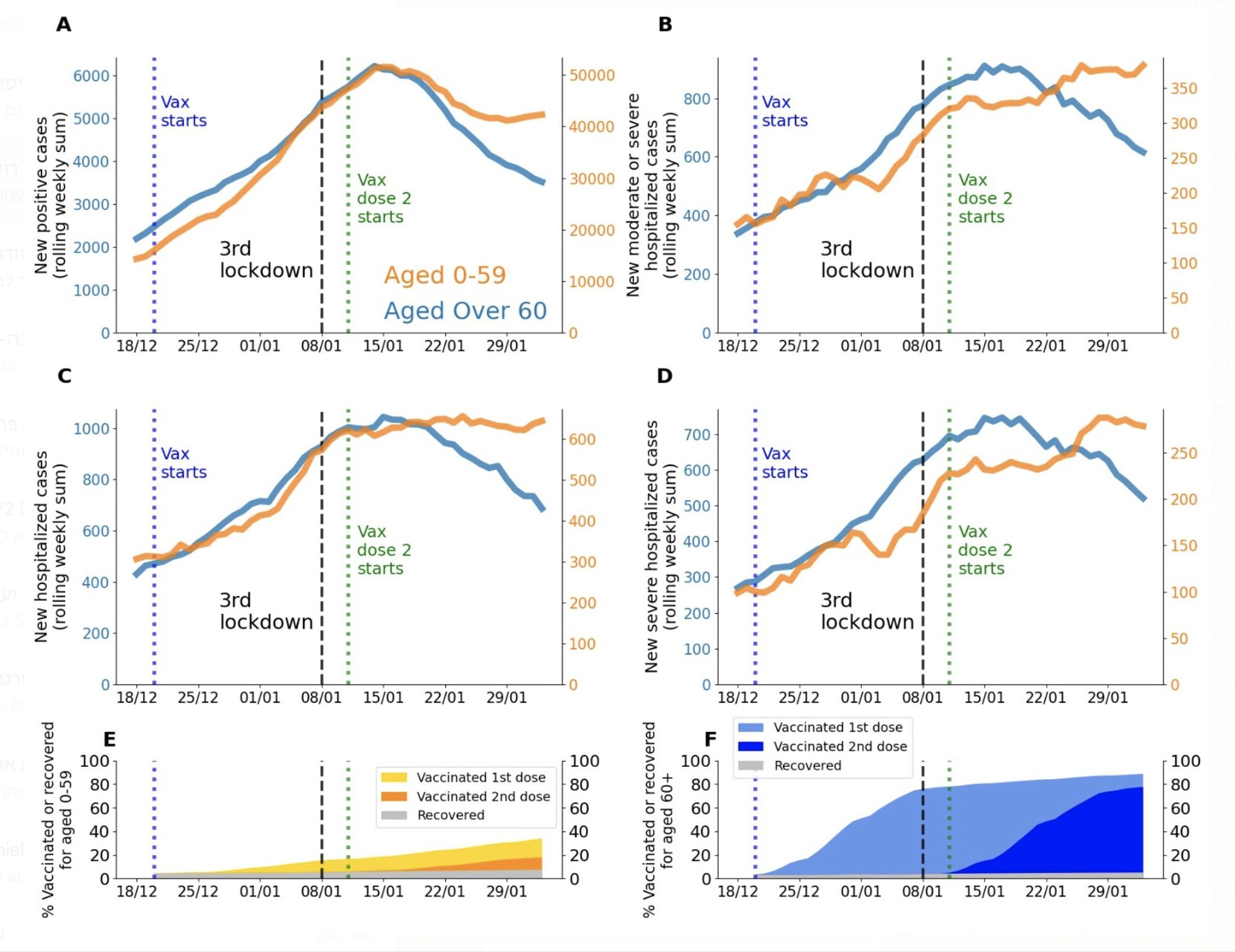 In Israel, the world’s leader in inoculations, there are clear signs of decreased severe illness and hospitalizations among the over 60s, prioritized early in the campaign.