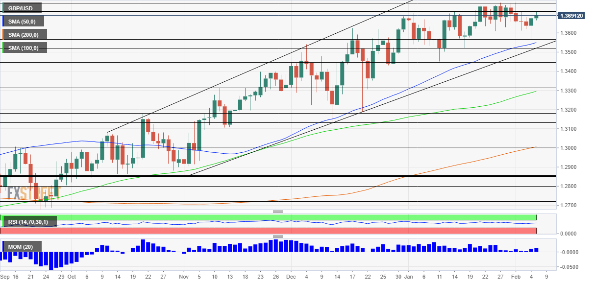 Resistance awaits at around 1.3720, which held GBP/USD down in January. It is followed by the 2021 peak of 1.3750. Further above, 1.3810 and 1.40 are upside targets.