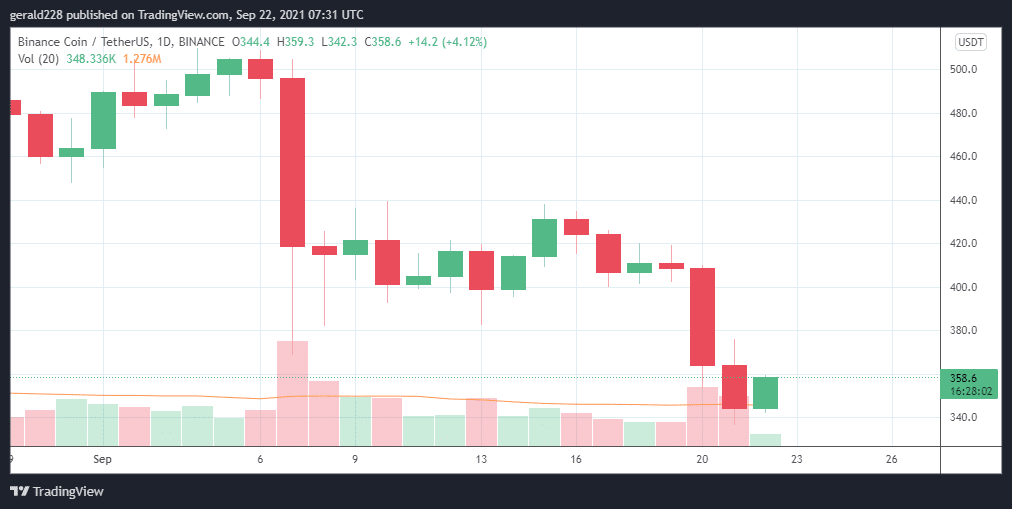 - The Binance Coin price has taken a battering with a descent of 25% from the September 6 high of $510.