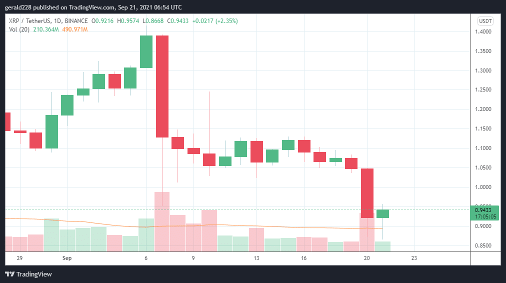 The Ripple price has lost a considerable portion of its recent gains where it is currently trading at the $0.94 level. That is around 35% of the September 6 high where the flash crash that occurred the following day pushed XRP down to just above the $1 level.