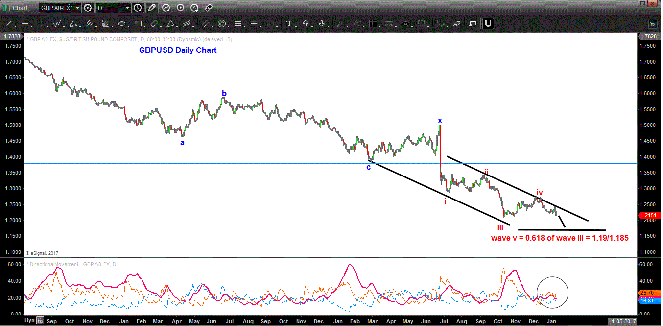 - As seen above in daily chart of GBPUSD, the pair has found resistance near downward sloping channel, breached the short term support of 1.2200 and resumed the downtrend in the form of minute wave v of minor wave a.
