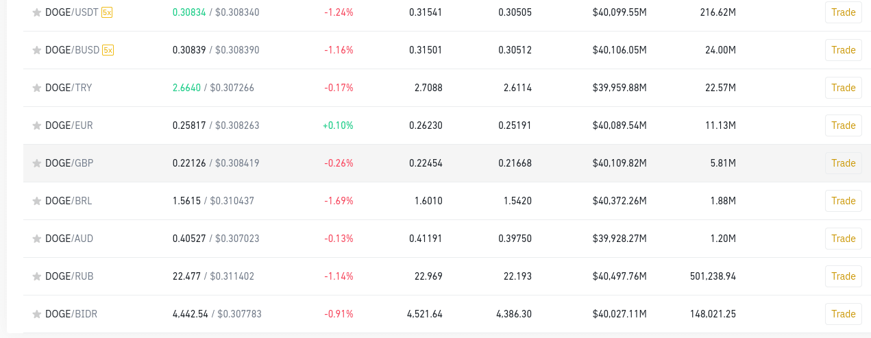 The other option is to deposit funds via a bank transfer – which is often free. Alternatively, if you’re interested in day trading Dogecoin, you’ll have heaps of pairs to choose from. For example, you can trade Dogecoin against other cryptocurrencies – such as USDT, BUST, or Bitcoin. Alternatively, you can trade Dogecoin against fiat currencies.