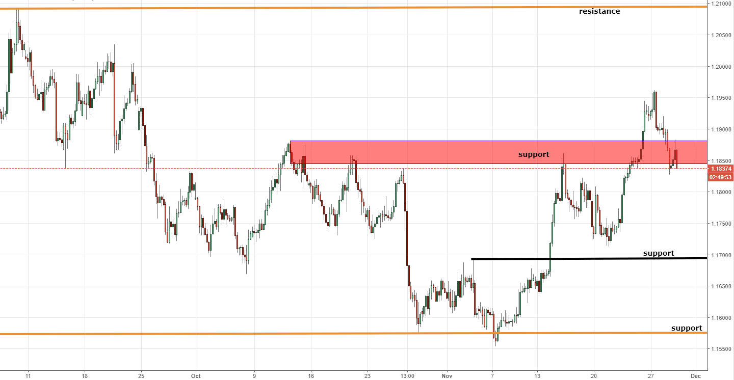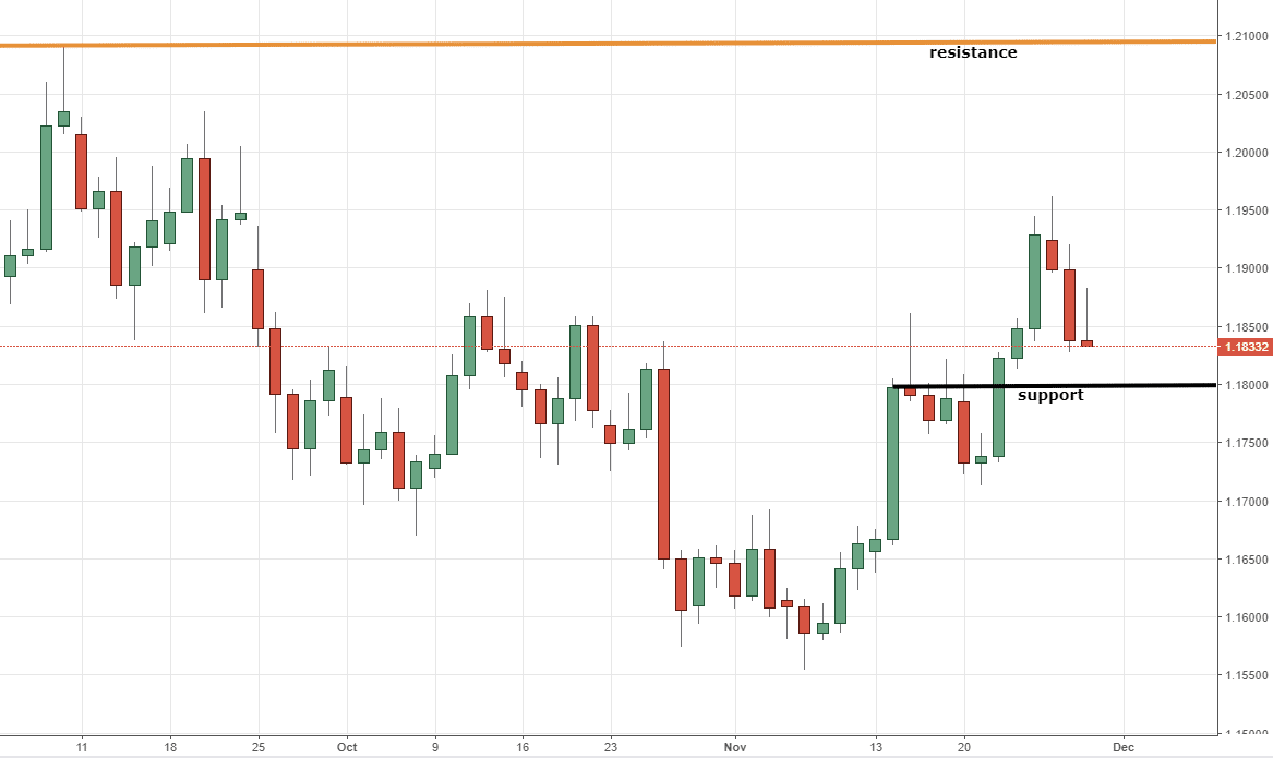 After this close to 400 pips rise, we saw price going lower to 1.1850, where it currently resides.