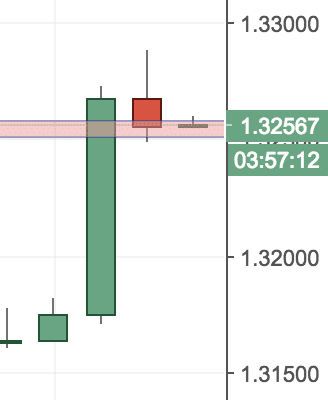 If we zoom closer, we can see the big green candle is followed by a small-bodied candle.