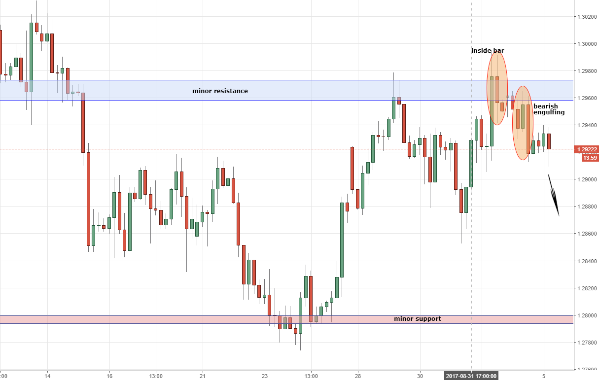 The 4-hour chart is showing us more bearish mood. There was an inside bar that formed on the minor resistance area. It was followed by a bearish engulfing pattern.