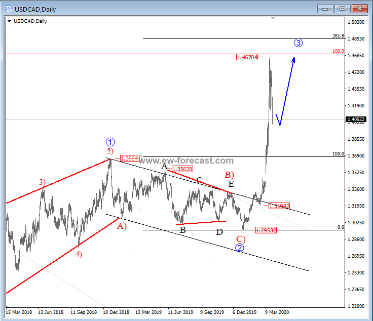 Hello traders, USDCAD is trading in a third wave of a bigger, bullish cycle which started in September of 2017. We see a sharp recovery from the 1.2953 level that can be part of a higher degree wave 3, and its five-wave structure. Wave 3 as we know is an impulse. That said, before further gains may be seen, we still need to be aware of temporary pullbacks within the uptrend; ideally one is already in motion from the 1.467 high.