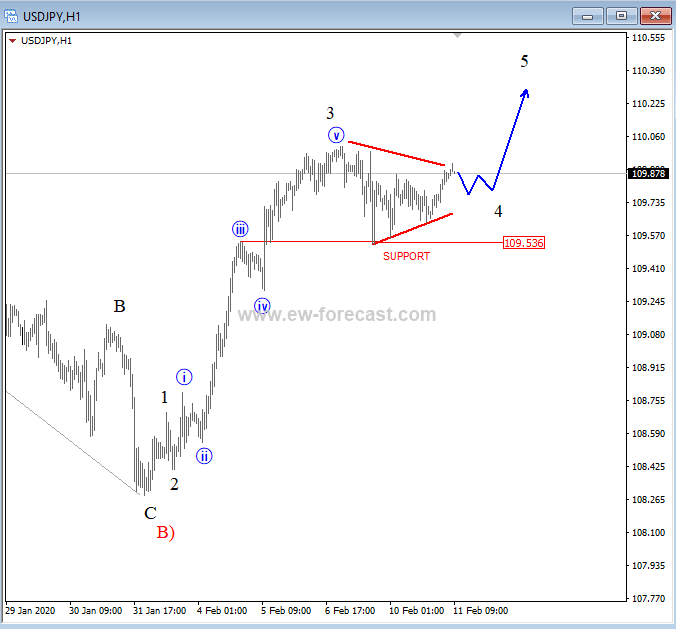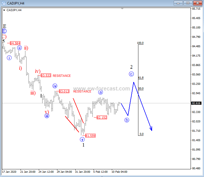 As stocks keep progressing higher, we may see more upside on USDJPY as well. There is a fourth wave seen on the hourly chart so a final trust up to 110.30/50 area can be in view before a top is formed. At the same time, we may also expect CADJPY to reach higher resistance at 83.00/83.50.