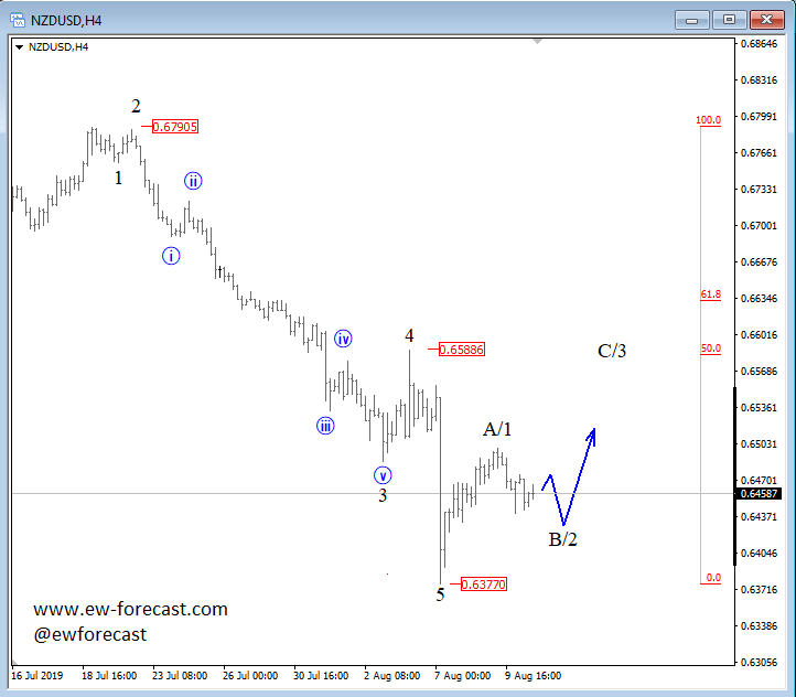 NZDUSD made a five-wave drop like Aussie from the 0.679 area and is now also recovering from the lows. We labeled a minimum three-wave rally in progress, with a minimum target near the 0.658 area.