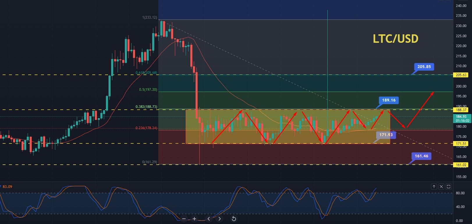On the bearish side, a breakout of the $162 level could extend the selling trend to the $162 and $157 levels. On the bullish side, the breakout of the $188 level could lead Litecoin towards the $197 resistance area. This resistance level marks 50% Fibonacci retracement levels.