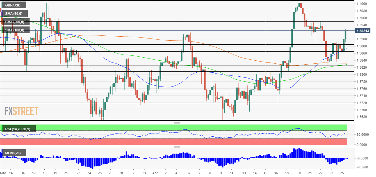 Above the daily high of 1.3930, the next resistance line to watch is 1.3950, which held GBP/USD down last week. It is followed by 1.4010, the stubborn April high.