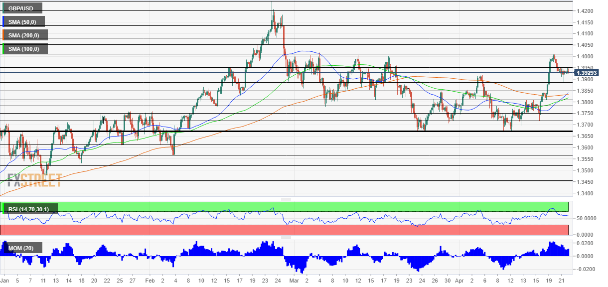- GBP/USD has been hovering around 1.3950 as markets are torn by mixed virus developments.
