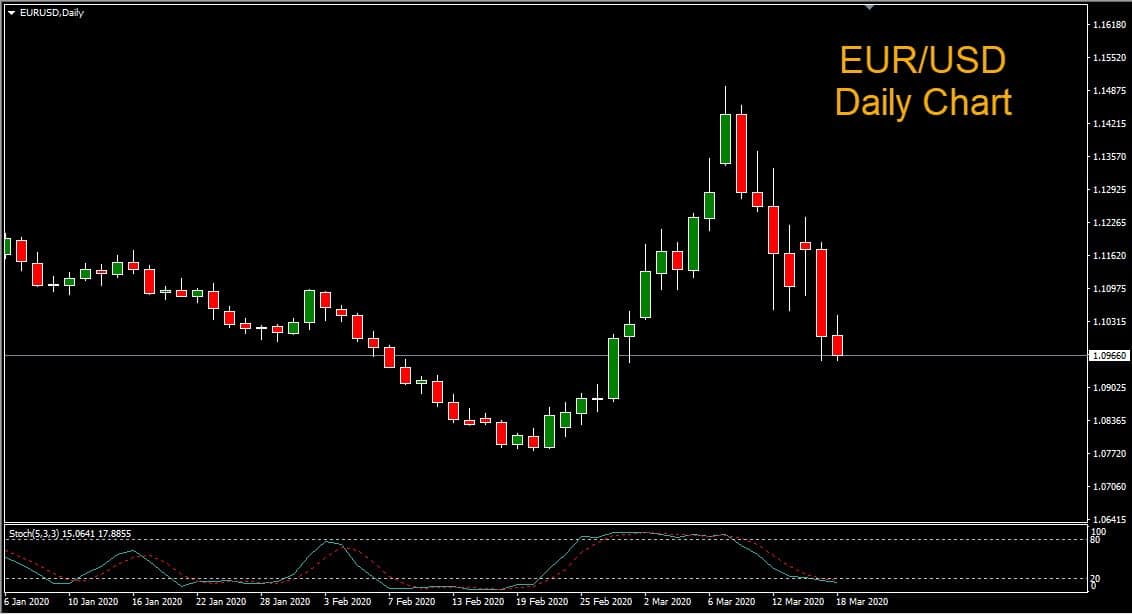 At the March 12th meeting, the European Central Bank (ECB) announced further stimulus to fight the economic impact of the coronavirus but disappointed markets by refraining from lowering interest rates. ECB president Christine Lagarde was criticised after refusing to assume the ‘whatever it takes’ stance of her predecessor Mario Draghi. The greenback has been favoured by investors due to its status as the world’s most liquid currency and its safe haven appeal. This demand for dollars is reflected in the sharp recent losses in EUR/USD.