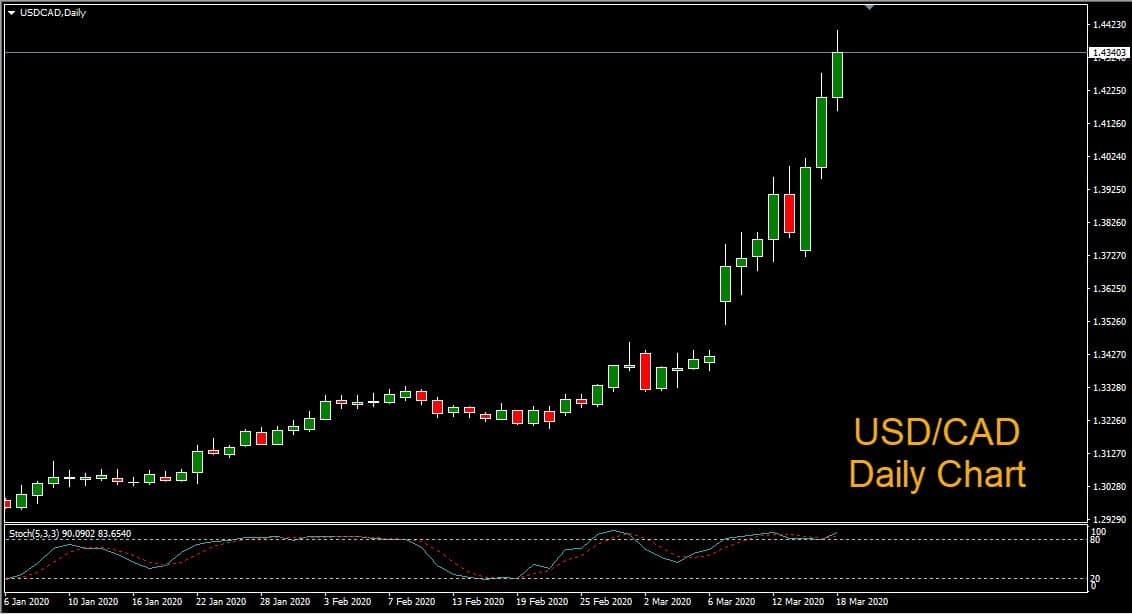 USD/CAD reached its highest levels since January of 2016 in Wednesday trading. The risk sensitive Canadian dollar plunged as crude oil prices cratered to below $24 – reaching the lowest levels since 2002. Oil prices suffered a historic collapse on March 9th, after Saudi Arabia pledged to aggressively boost production and cut prices, following Russia’s refusal to join an OPEC-led production cut. The Loonie has a positive correlation with crude oil because Canada is one of the largest oil producing countries in the world. A global economic slowdown due to the coronavirus naturally impacts demand for crude oil, pressuring prices and in turn weighing on the Canadian dollar.