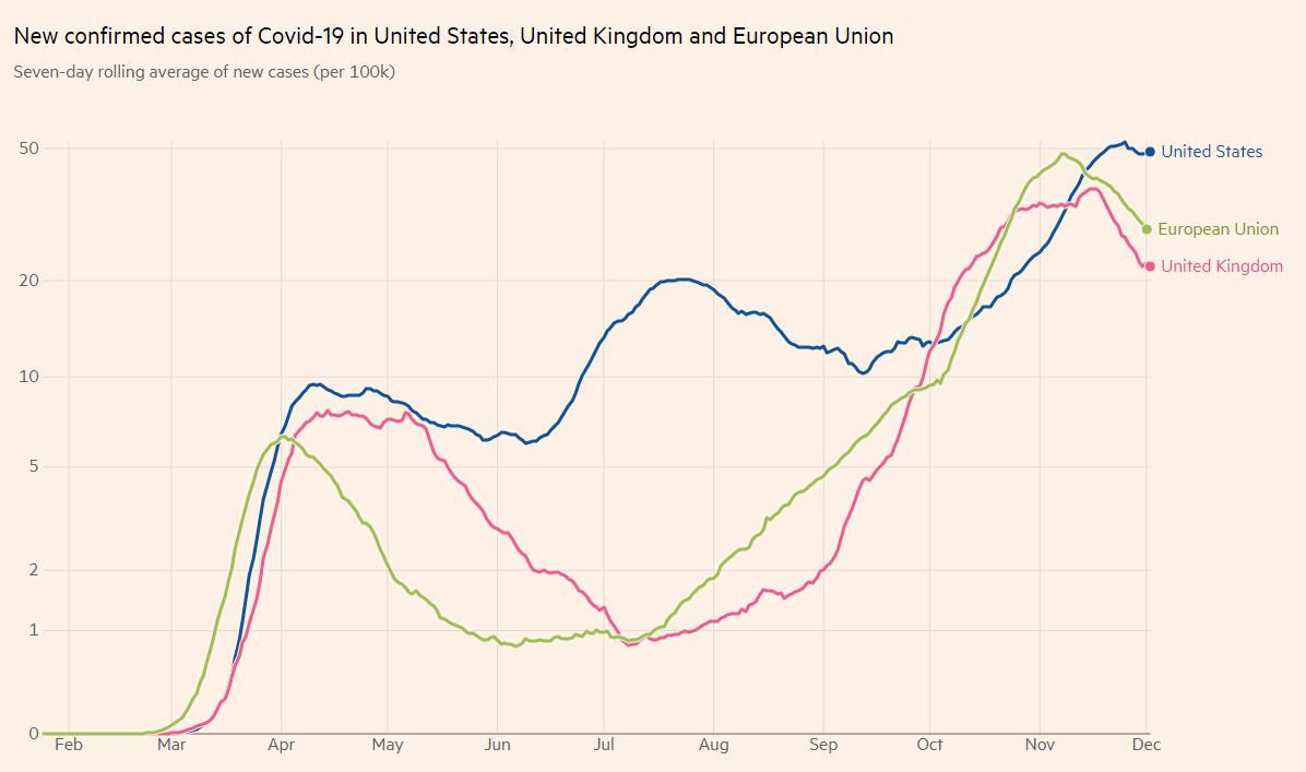 Covid infections in the US, the EU and the UK