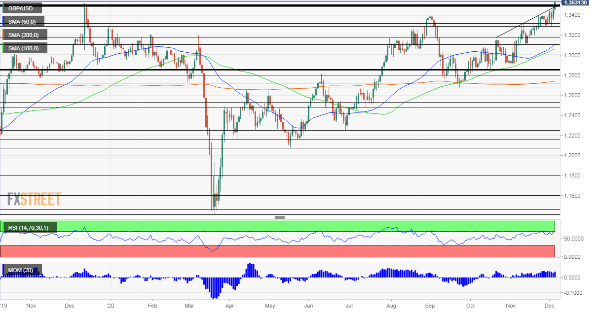 GBP/USD has hit new cycle highs amid Brexit optimism, yet trading remained nervous and choppy. The vaccine approval and hopes for US fiscal stimulus were decidedly positive, and all three themes will likely dominate the scene again, with UK growth and US consumer statistics having their time in the sun as well.