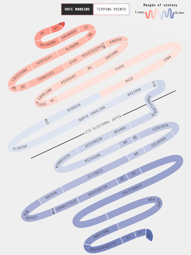 However., the processing of mail-in ballots – some arriving after Tuesday – would likely trigger a “blue shift,” meaning an advantage for Biden. Pennsylvania has a Democratic Governor but a Republican-controlled legislature. Who calls the winner or stops the count? Will it reach the Supreme Court?