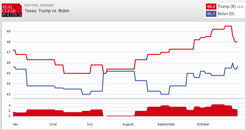 At the moment, Trump is leading the large state by 2.3% – below the margin of error, and polls could be overestimating him in 2020 as they underestimated him in 2016.