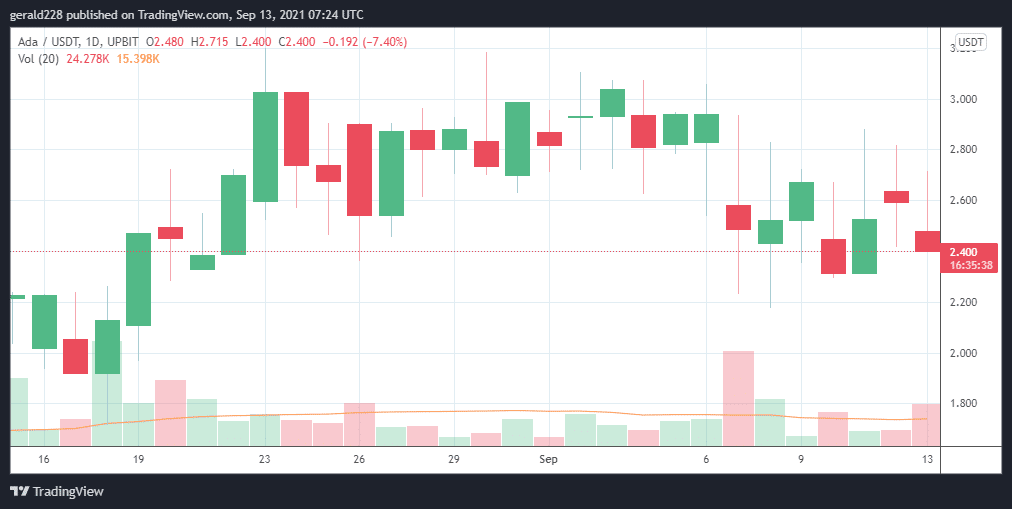 The Cardano price is down around 8% over a 24-hour period to the $2.40 mark. Although that may not seem much of a movement, buyers who were hoping for a big bounce after yesterday’s Alonzo upgrade turned out disappointed. As indicated by some analysts, this tech upgrade seemed to have been already priced in up to a certain point.