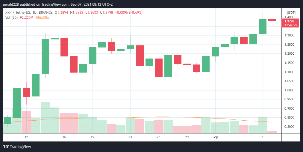 The Ripple price has appreciated by around 12% since last week and is looking to make further gains long term. Although there has been a slight pullback of around 2% over the past 24 hours, momentum in XRP seems bullish as the market continues to digest the positive implications of the XRP/SEC case. It seems that the 4-year long battle will finally be resolved soon and the upside is that its looking good for the Ripple price.