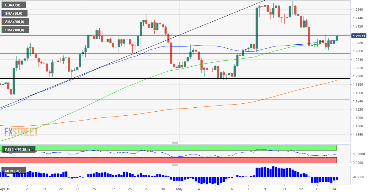 Momentum on the four-hour chart has turned negative, but the currency pair has managed to surpass the 50 and 100 Simple Moving Averages (SMAs). Euro/dollar seems to be looking for a new direction.
