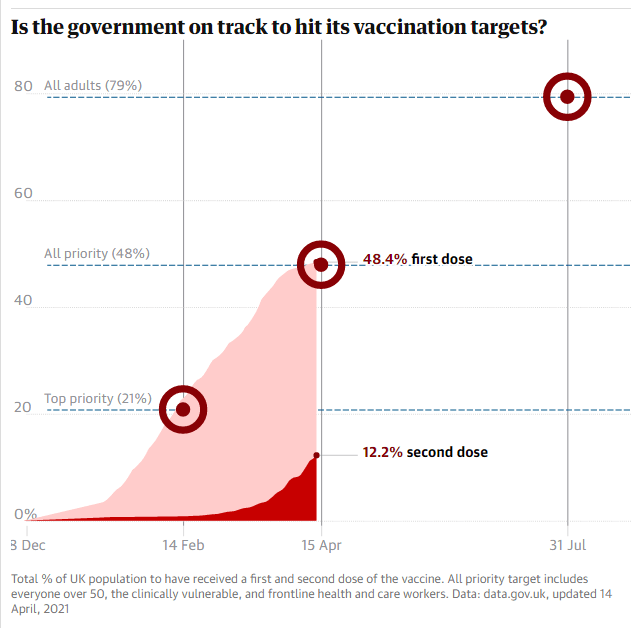 As the chart shows, 48.4% have already received one shot at the time of writing: