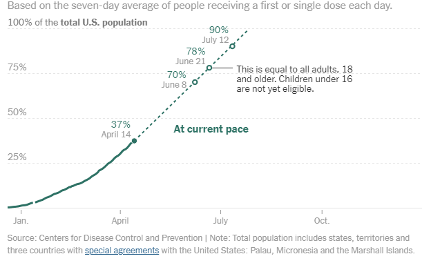 The pace of US vaccinations has been defying skeptics who thought it would slow down. All Americans will be offered COVID-19 vaccines from April 19, and perhaps another week of robust inoculations is due before an inevitable slowdown later on.