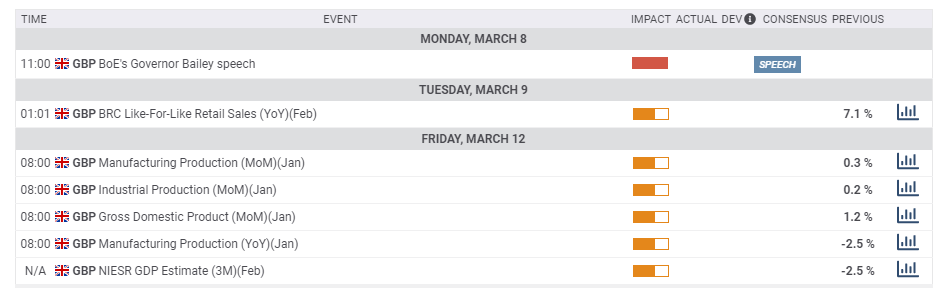 Bank of England Governor Andrew Bailey is set to speak early in the week, in his last appearance before the next rate decision the following week. Similar to Powell, he is set to shape expectations and perhaps comment on rising bond yields. For the UK, it may be less of an issue – the government seems to pay heed to rebalance the budget, at least more than in the US.